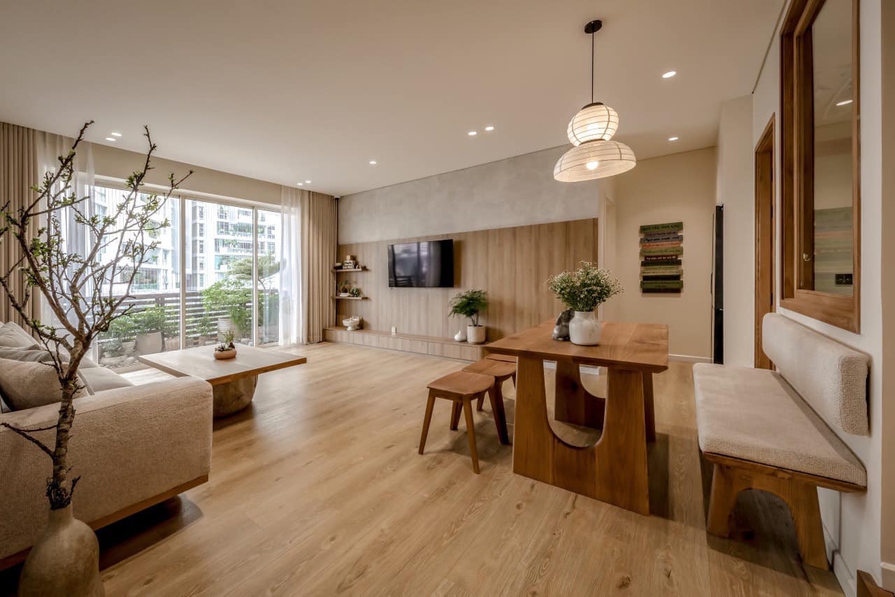 Sàn gỗ công nghiệp cung cấp một bề mặt ấm áp và dễ chịu trong suốt quá trình sử dụng vào mùa mưa, mùa đông lạnh. Đồng thời, với khả năng điều chỉnh nhiệt độ ưu việt, sàn gỗ cũng giúp làm mát không gian trong mùa hè, tạo nên bầu không khí dễ chịu cho căn hộ chung cư.