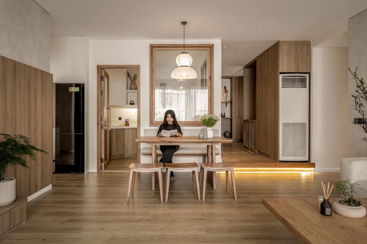 Sự kết hợp giữa sàn gỗ và ánh sáng