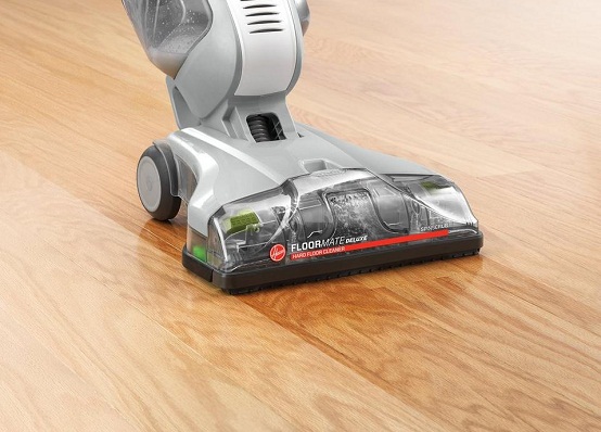 + Bước 1: Dùng chổi hoặc máy hút bụi để loại bỏ hết bụi bẩn và cát, lông vật nuôi, sợ vải trên sàn gỗ. Các hạt cát to là một trong những tác nhân làm cho sàn gỗ bị trầy xước. Bụi bẩn nếu gặp nước sẽ bám vào các mạch hèm và bề mặt sàn gỗ làm cho bề mặt trông bị mờ và cũ kỹ hơn. Việc loại bỏ các loại bụi bẩn này trước khi lau sàn trể tránh hạt cát bị kéo đi kéo lại làm xước sàn hoặc các sợi vải, lông vật nuôi gặp nước ẩm bám chặt xuống mặt sàn.