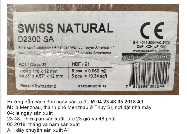 Bên cạnh đó, theo chia sẻ của đơn vị nhập khẩu và phân phối độc quyền các dòng sàn gỗ công nghiệp Châu Âu cao cấp tại Việt Nam bật mí thêm: "Tất cả những sàn gỗ chính hãng, nổi tiếng, trên bao bì sản phẩm đều được in nhiều thứ tiếng như: Tiếng Anh, Đức, Pháp, Tây Ban Nha…. Hơn nữa, khi quan sát bên ngoài người tiêu dùng dễ dàng thấy được những thông tin sản phẩm, thông tin nhà máy sản xuất, nước sản xuất, hướng dẫn lắp đặt, hướng dẫn bảo quản được in ấn rất rõ nét. Ví dụ, như sàn gỗ Thụy Sĩ Kronoswiss ngoài vỏ hộp và thanh gỗ được ghi rõ: Made in Switzerland (sản xuất tại Thụy Sĩ). Khi khách đến showroom tham khảo, mua hàng chúng tôi đều chỉ rõ các thông tin cho khách hàng phân biệt sự khác nhau giữa sàn gỗ Châu Âu chính hãng và sàn gỗ nhái".