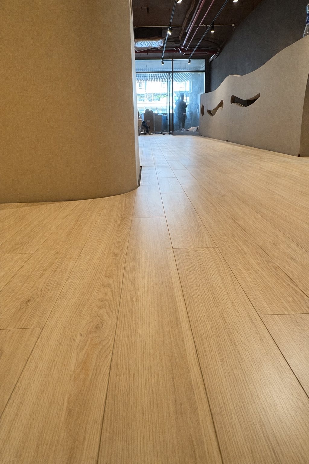 Sàn gỗ công nghiệp chất lượng thường đạt tiêu chuẩn AC4, AC5 – phù hợp với khu vực có mật độ sử dụng cao như văn phòng, showroom, trung tâm thương mại.