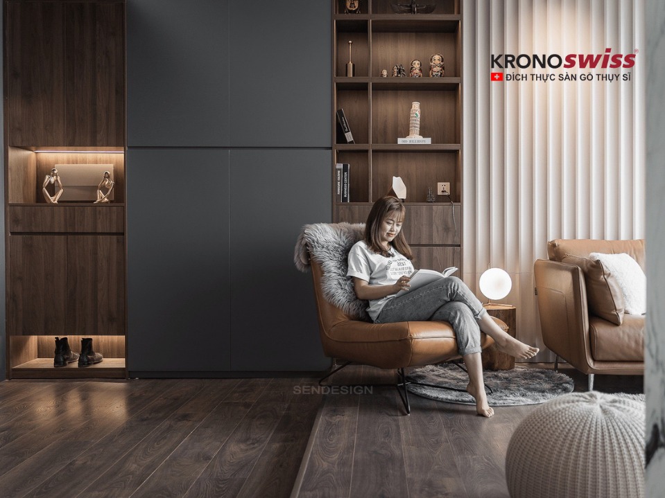 Sàn gỗ công nghiệp màu tối luôn được nhiều người quan tâm bởi đây là màu sắc cơ bản trong bảng màu, lại không bao giờ lỗi thời.